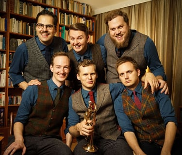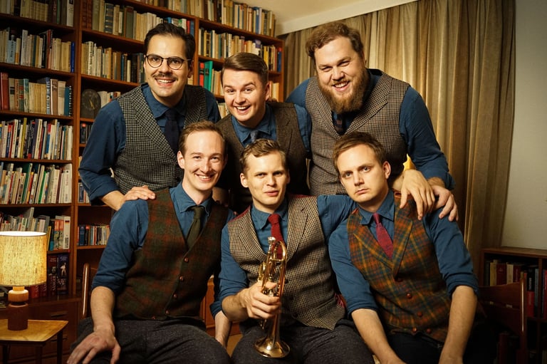 Die Kombination aus klassischem Dixieland Swing der 20er mit den Hits von heute bringt garantiert jedes Tanzbein zum Schwingen. Diese sechs talentierten Musiker werden ein Lächeln in Ihr Gesicht zaubern!